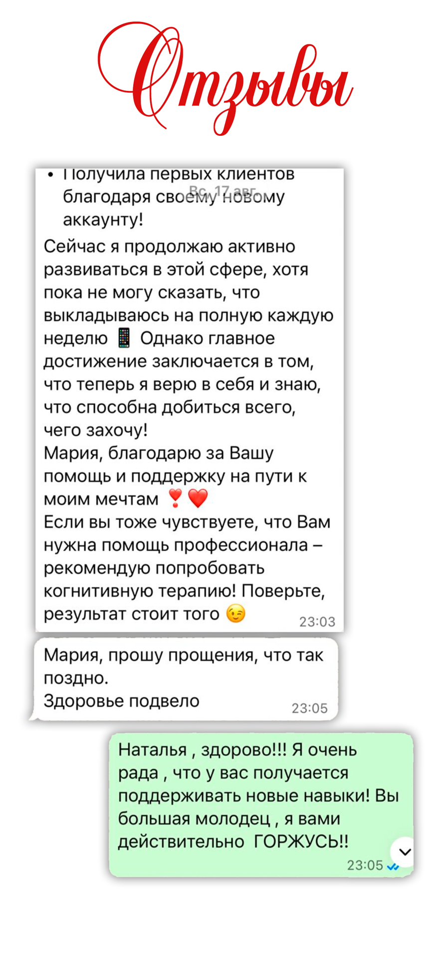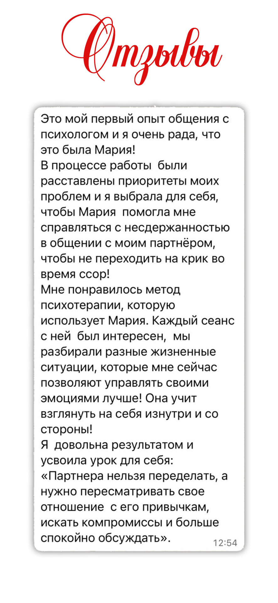 Отличаю психологические трудности от медицинских состояний и при необходимости могу рекомендовать консультацию профильного врача.